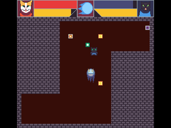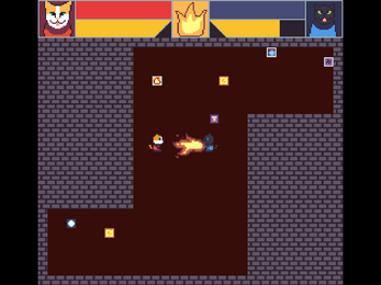 Play as either Catrick or Nimbus in a top down fighting game where you and your opponent share every item you guys pick up!